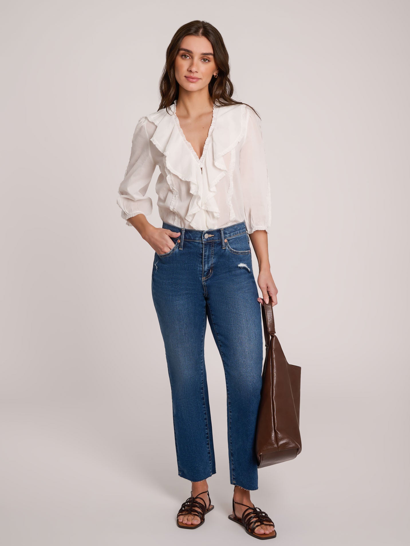 DESCRIPTION Discover the perfect balance of edgy and effortless with our straight-leg jeans. Featuring a raw hem...