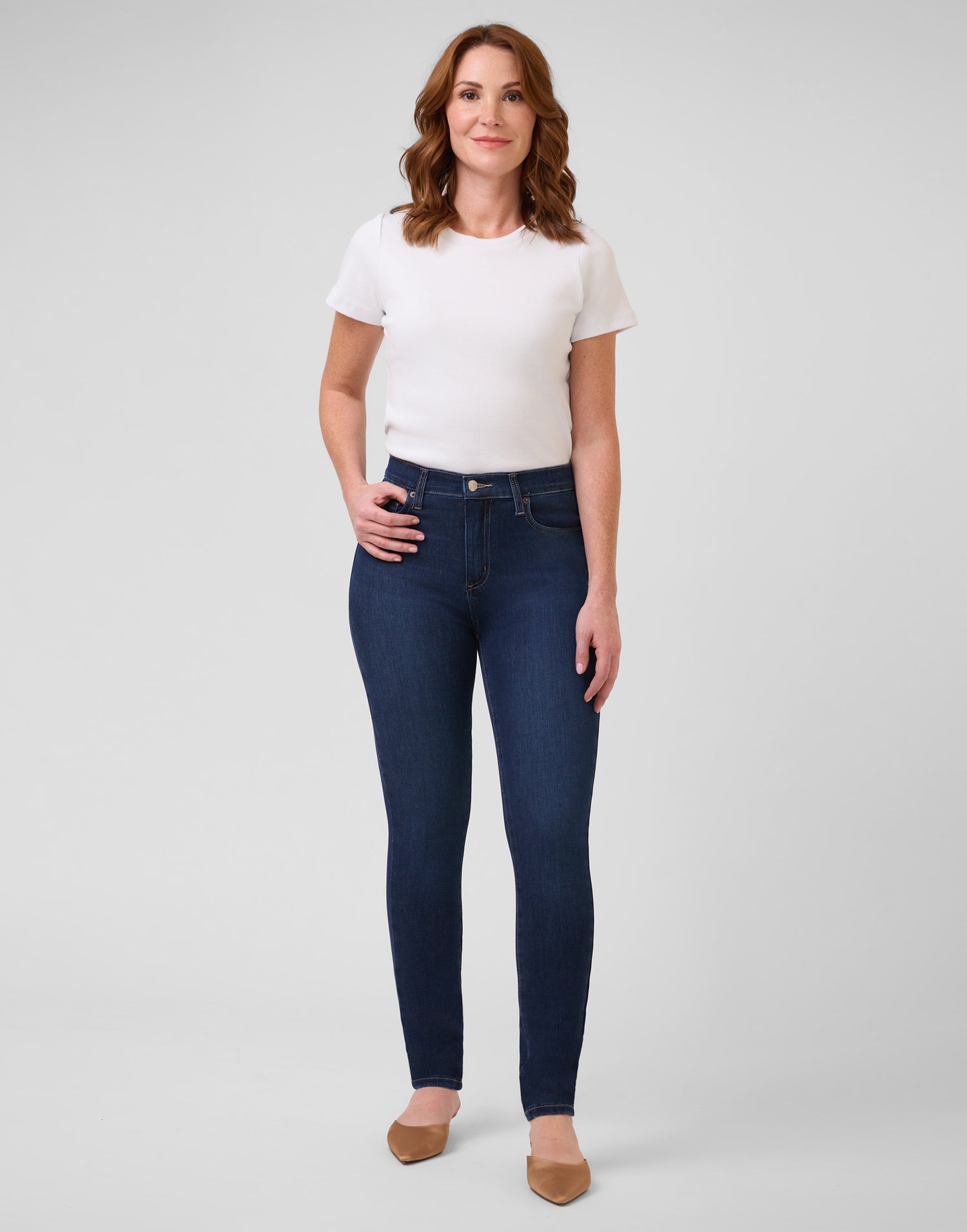 Discover the allure of our iconic Dark Indie denim—classic-rise skinny jeans in a rich indigo wash with refined whiskers and a flattering 30" inseam.
