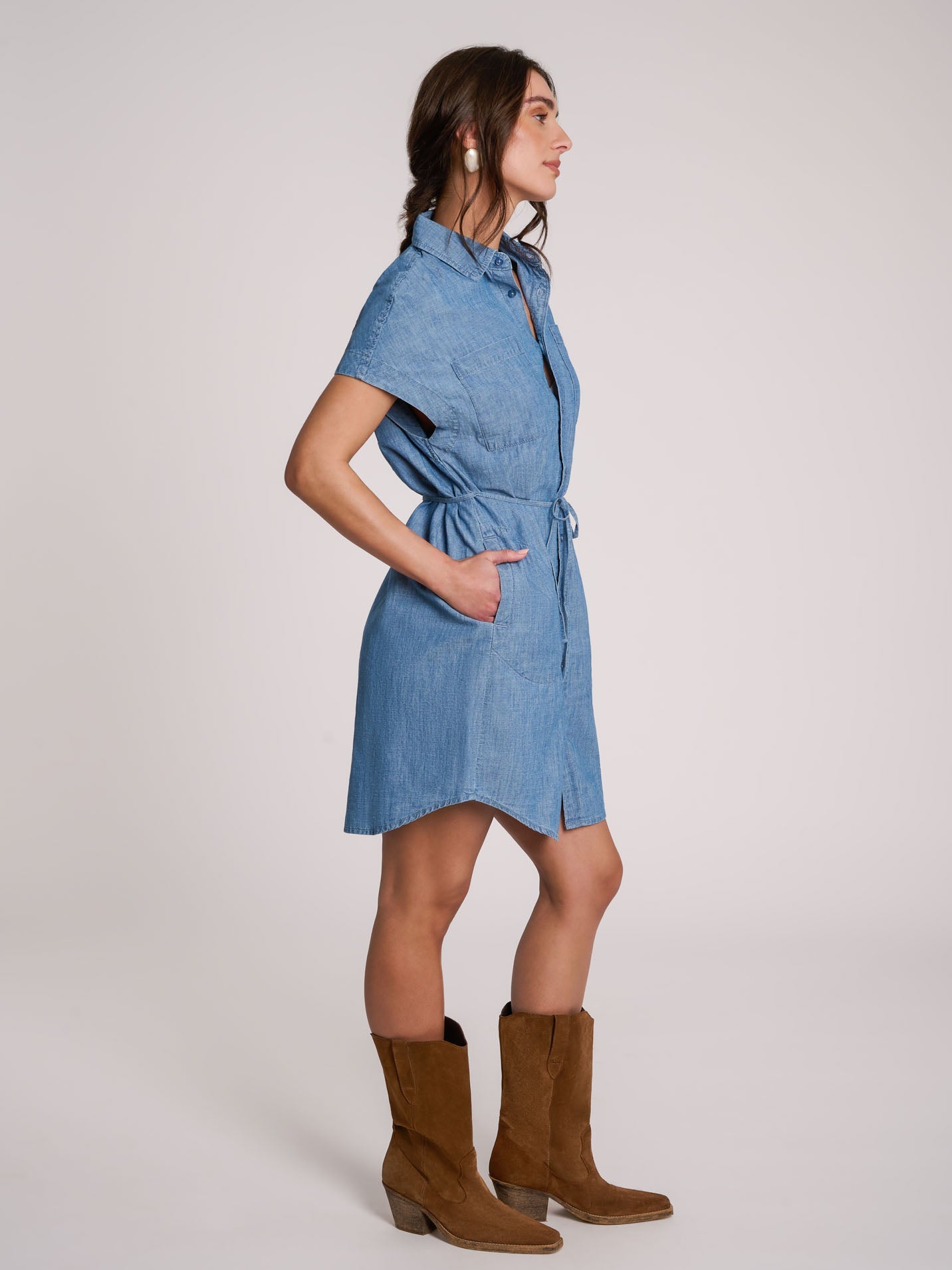 Isabelle is 5'9" and wearing a size S. Vanessak is 5'7" and wearing a size S.