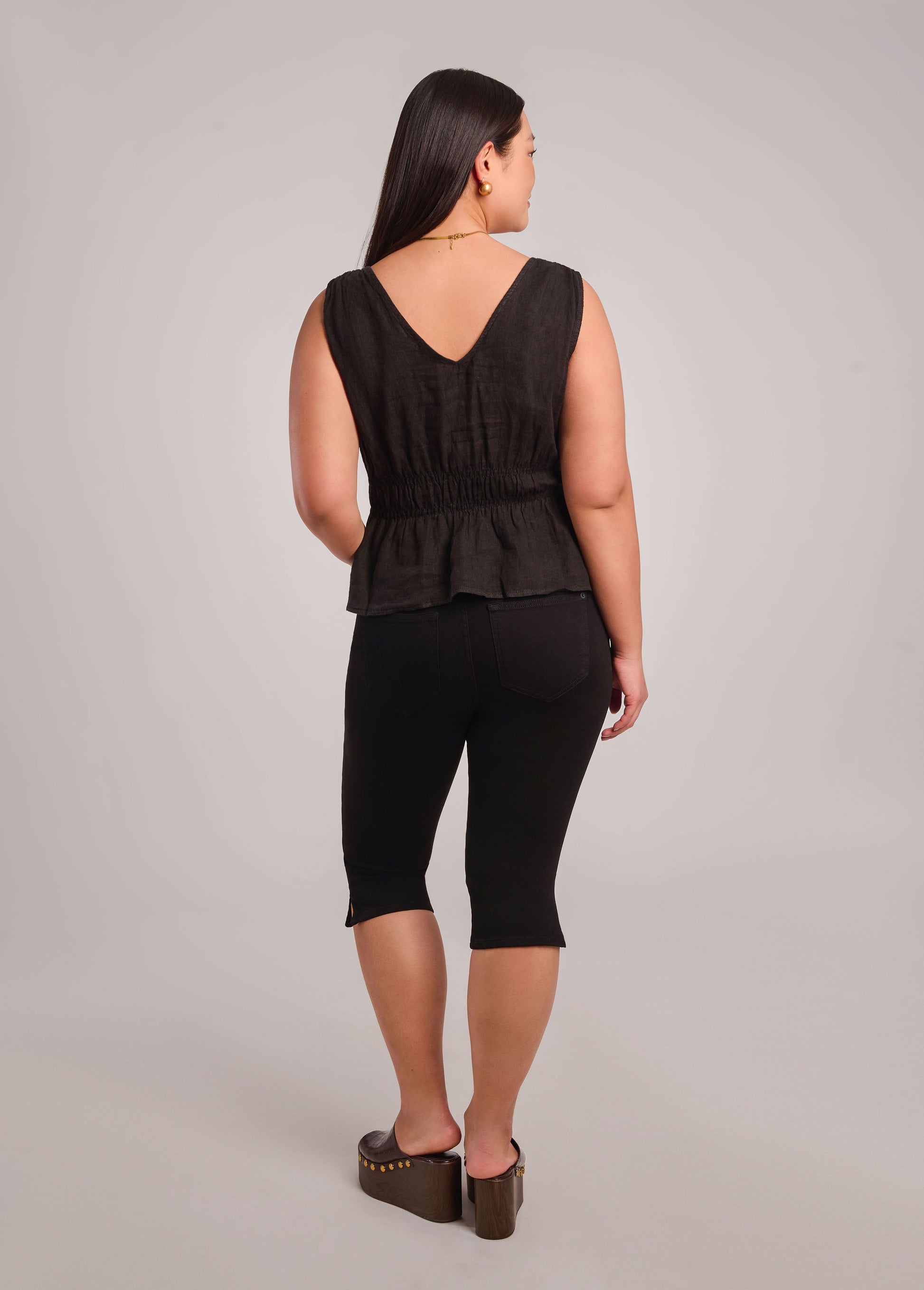 ELOISE V-NECK LINEN TANK TOP / BLACK