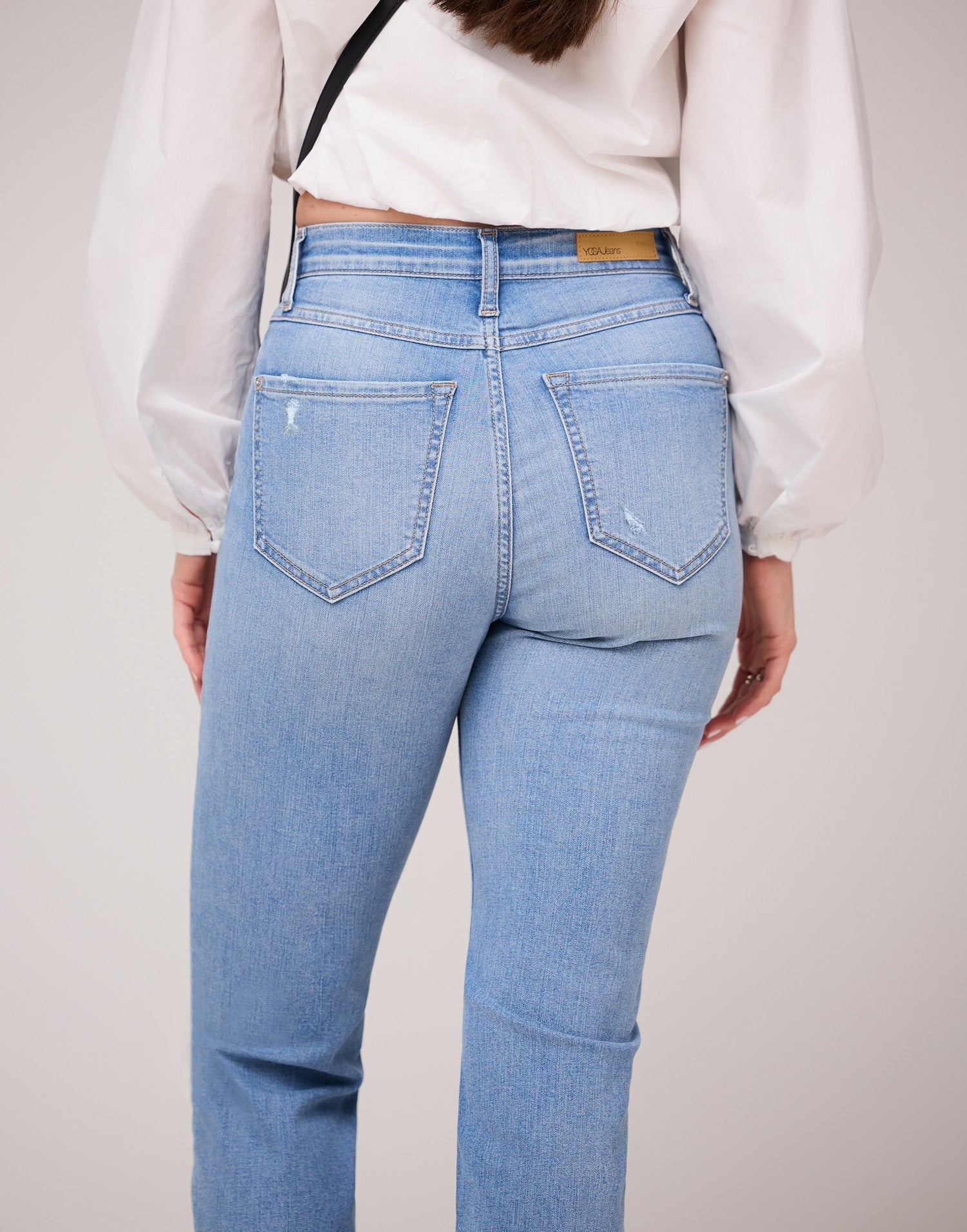 Vegan leather YJ patch at back waist