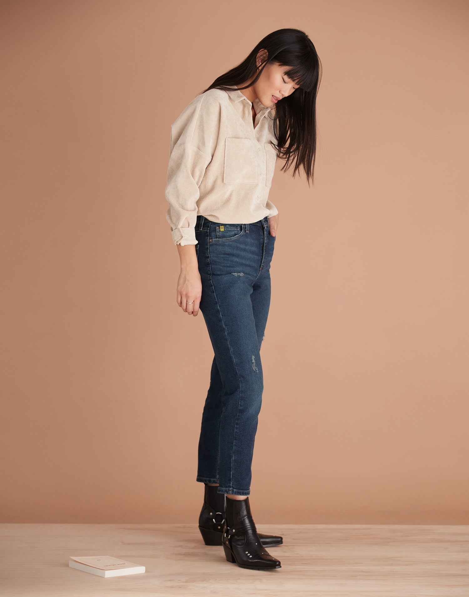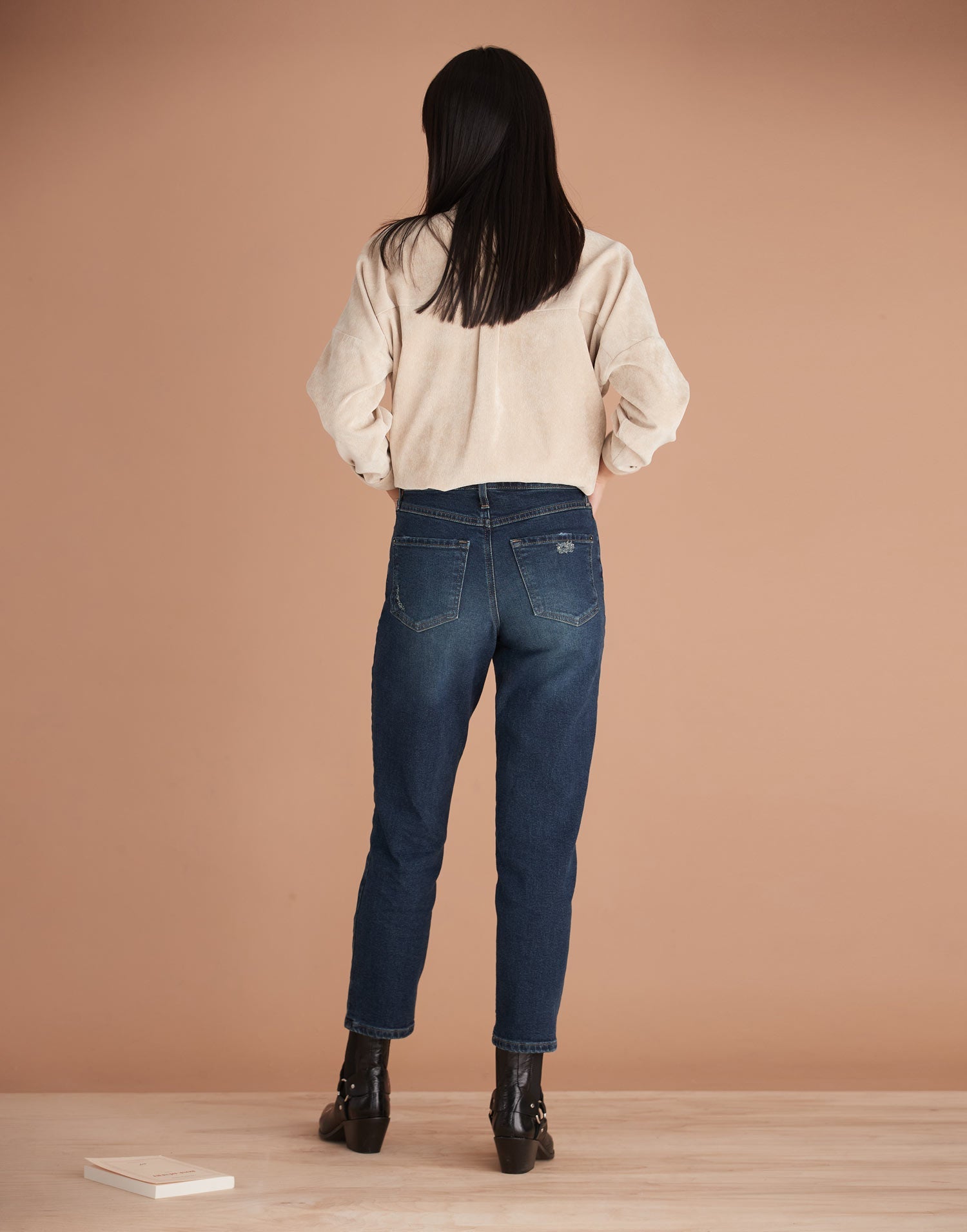 Emily, our slim silhouette, is inspired by mom jeans with a slim fit around the hips and a tape...