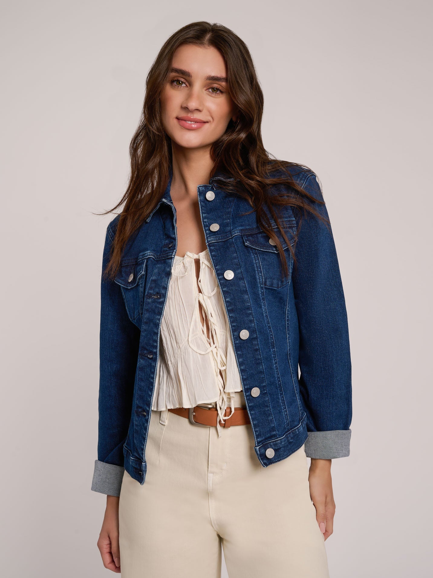 DESCRIPTION Walking into spring with our dark blue full bloom jacket—tailored to perfection with silver logo but...