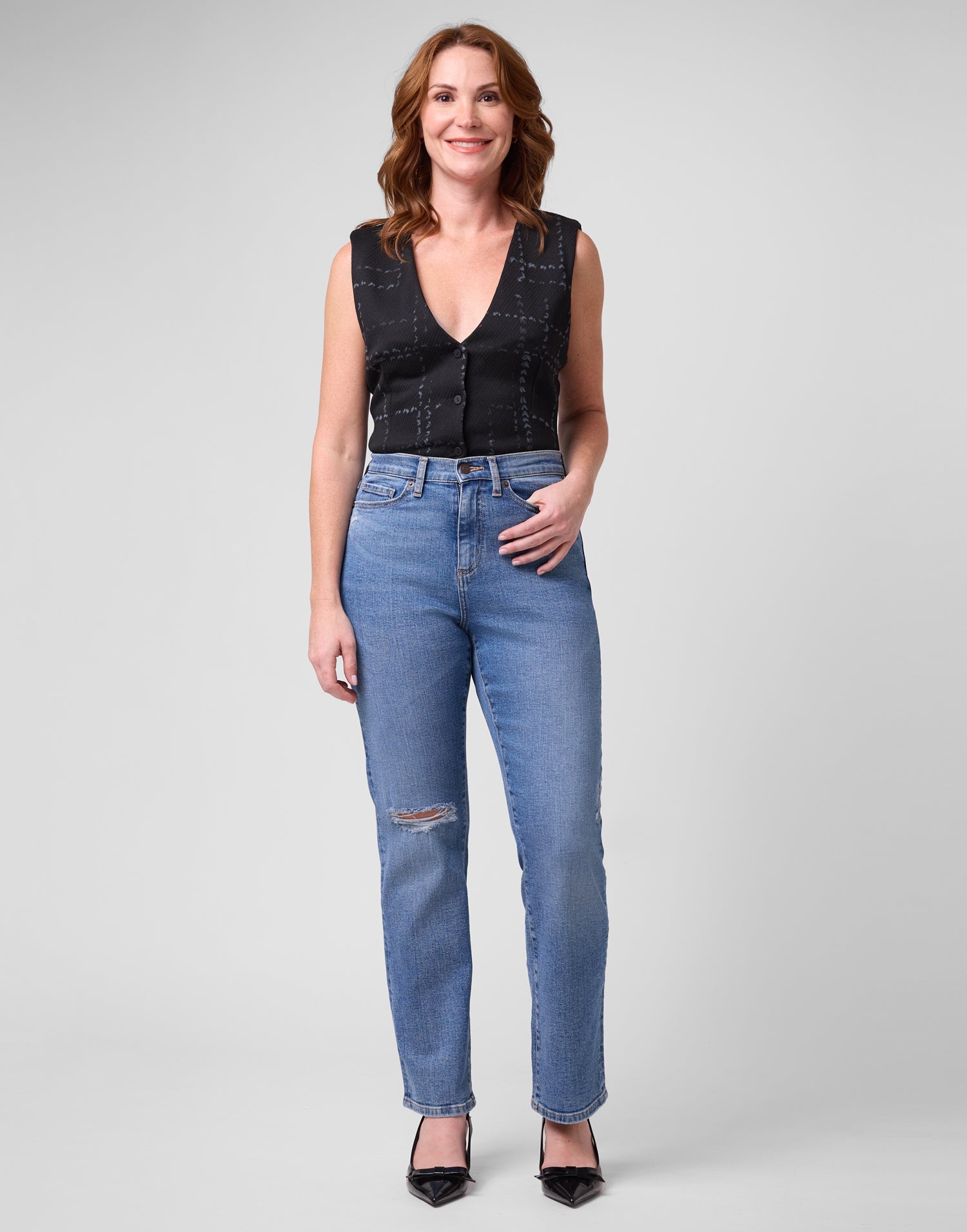 DESCRIPTION DU PRODUIT Découvrez notre jean droit à taille haute en denim délavé moyen qui rappelle le chic de T...