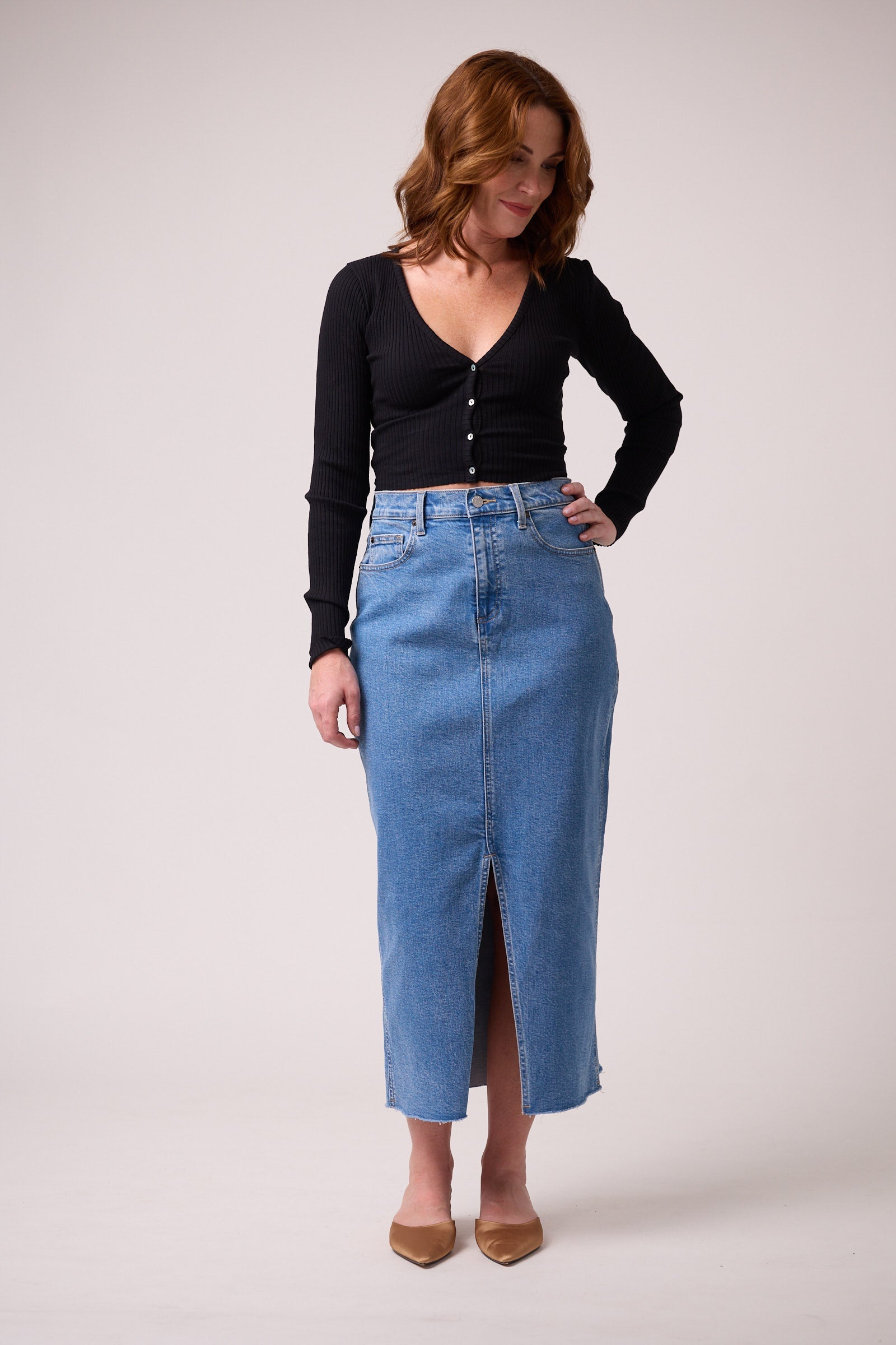 Lila mesure 5’9” et porte une taille 26. Britney mesure 5’10” et porte une taille 26.