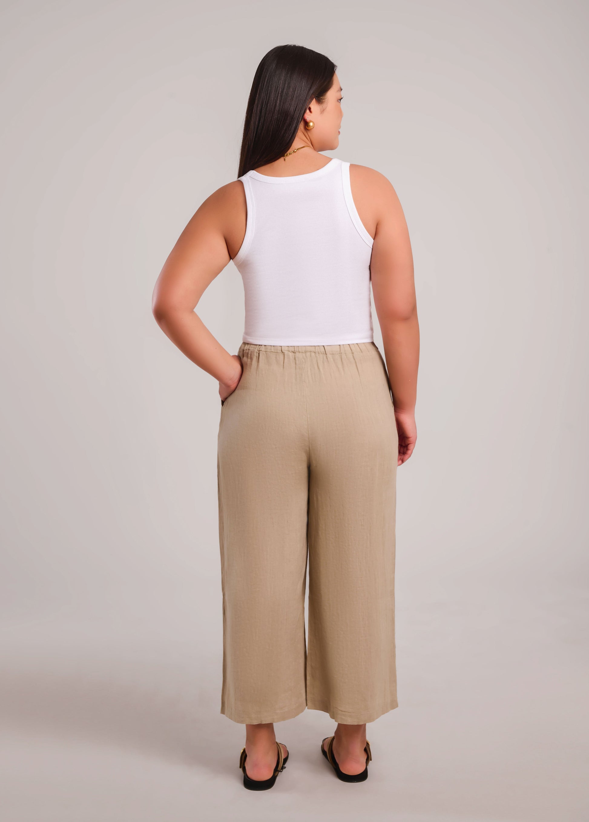 KAMILLA CROPPED WIDE LEG TROUSERS / SAND DUNE