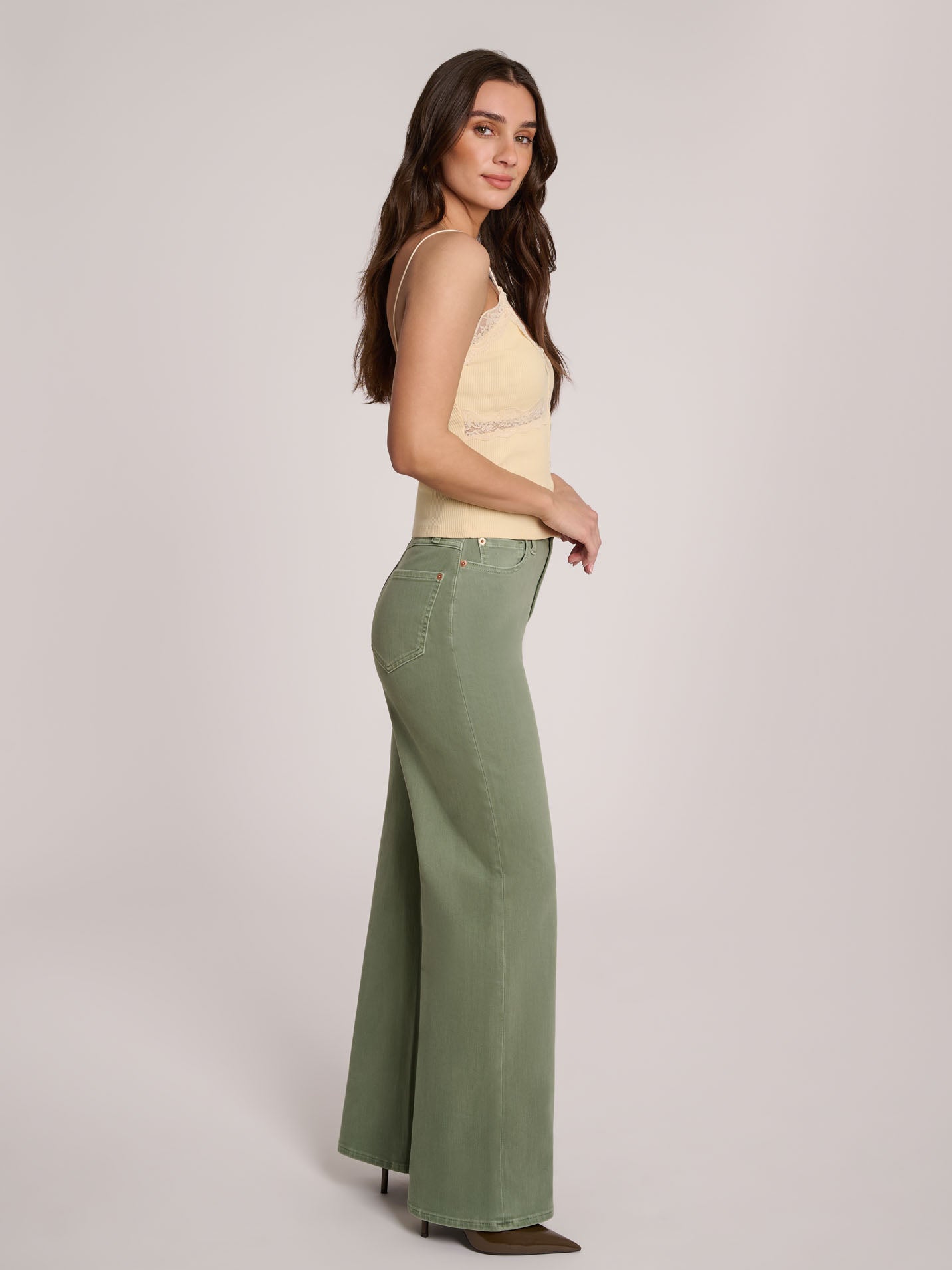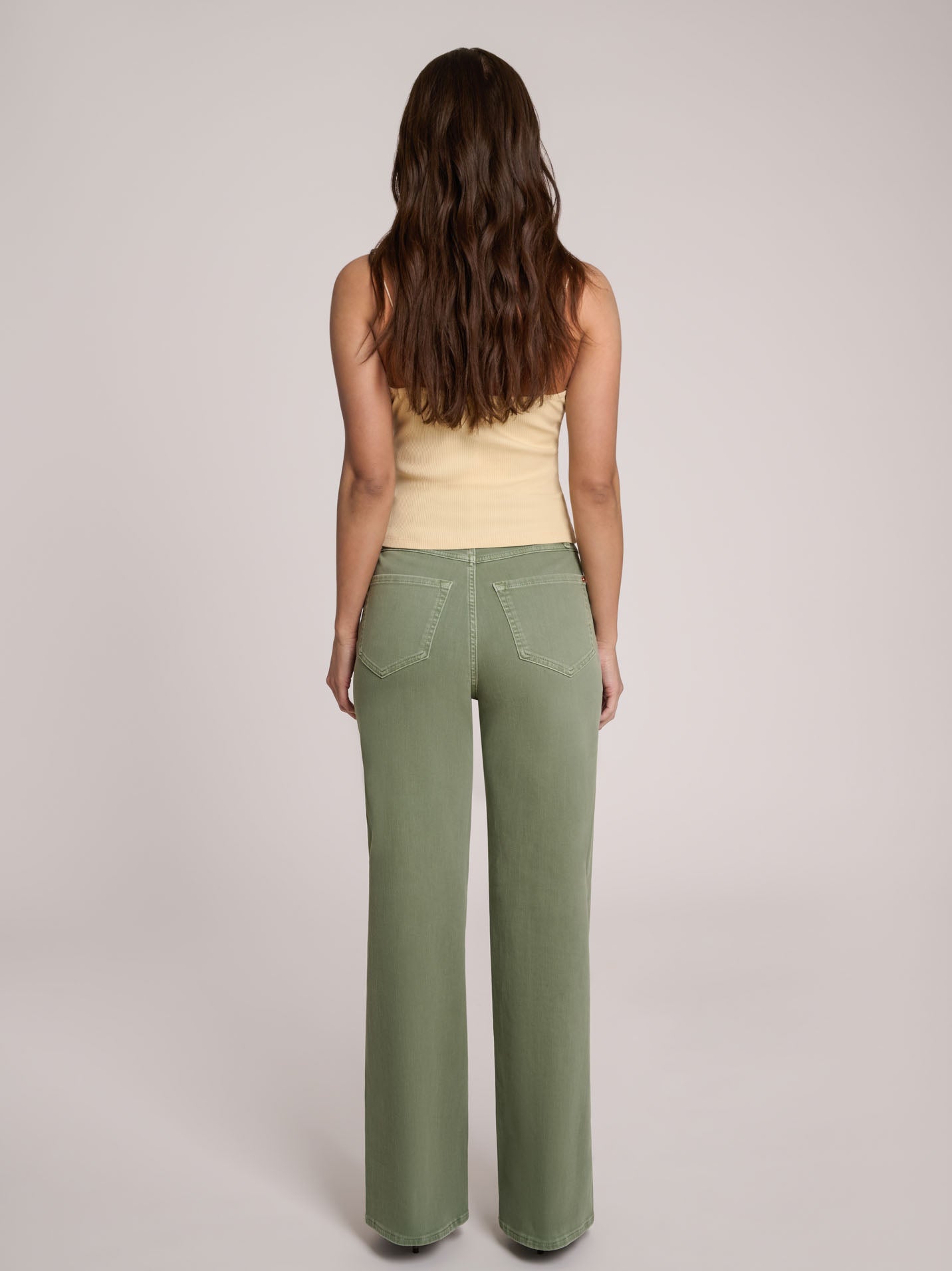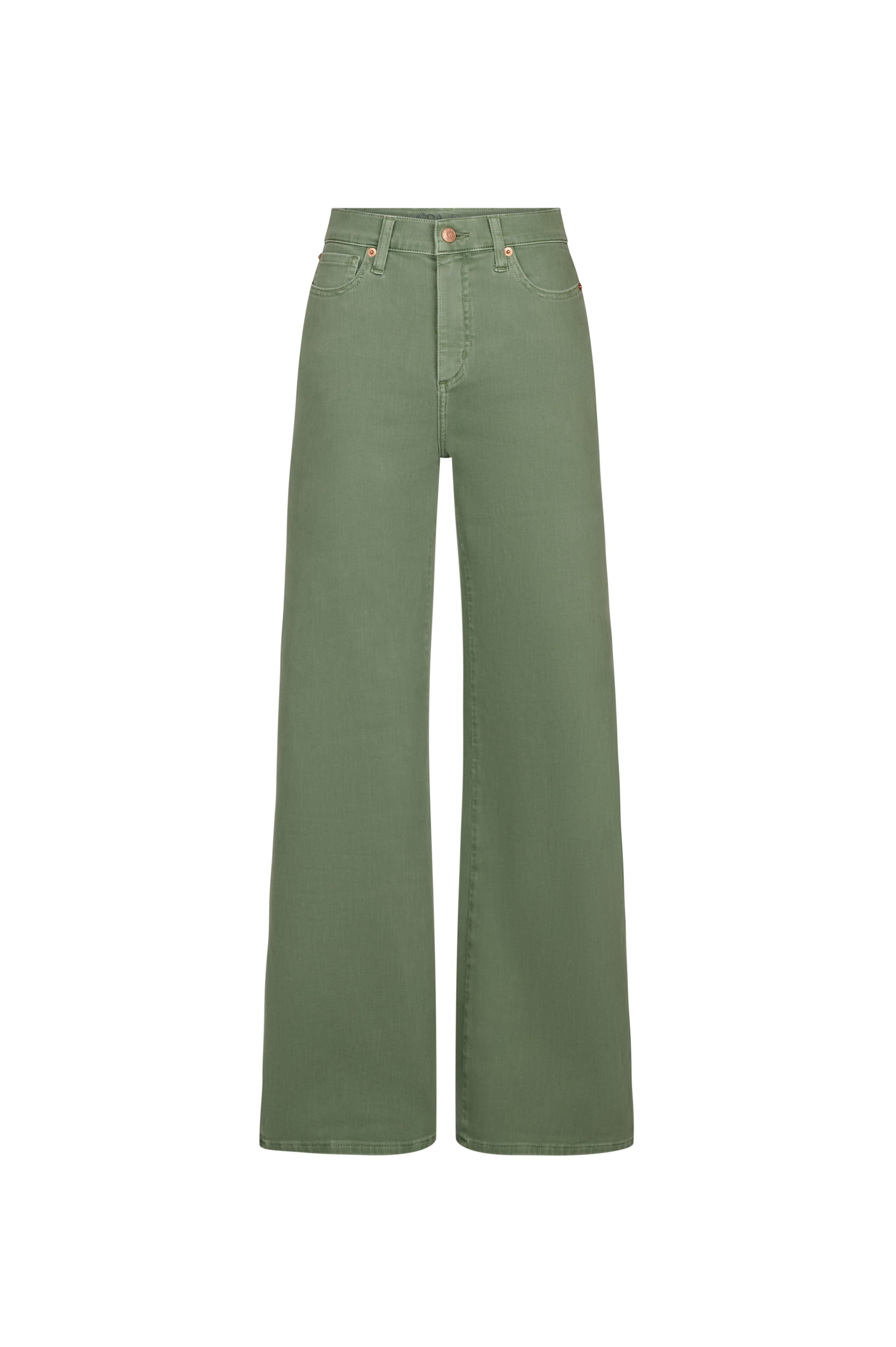 DESCRIPTION Upgrade your wardrobe with our high waisted beach grass Jeans in a chic off-light green hue. With a fla...
