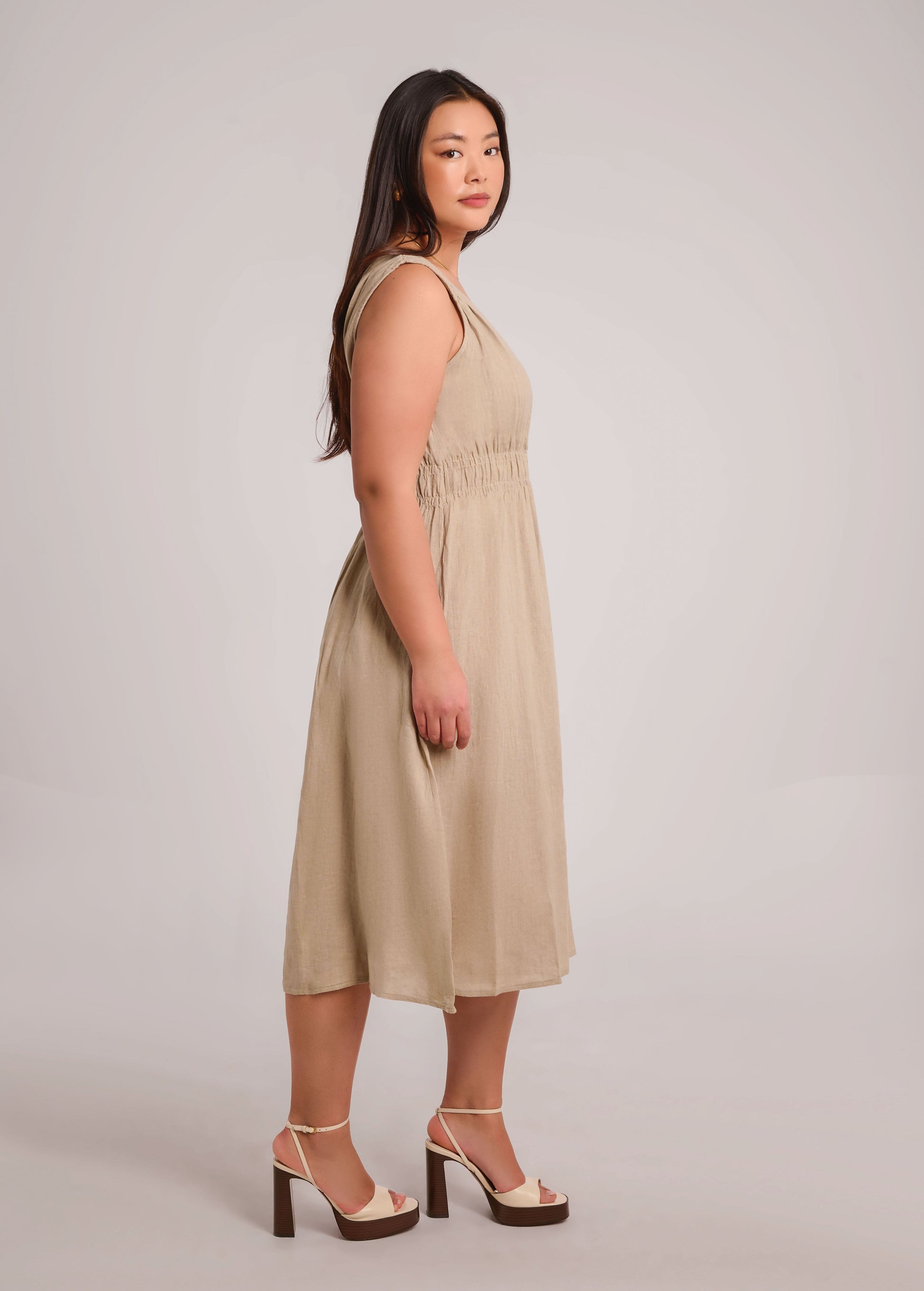 LUNA MIDI LINEN DRESS / SAND DUNE