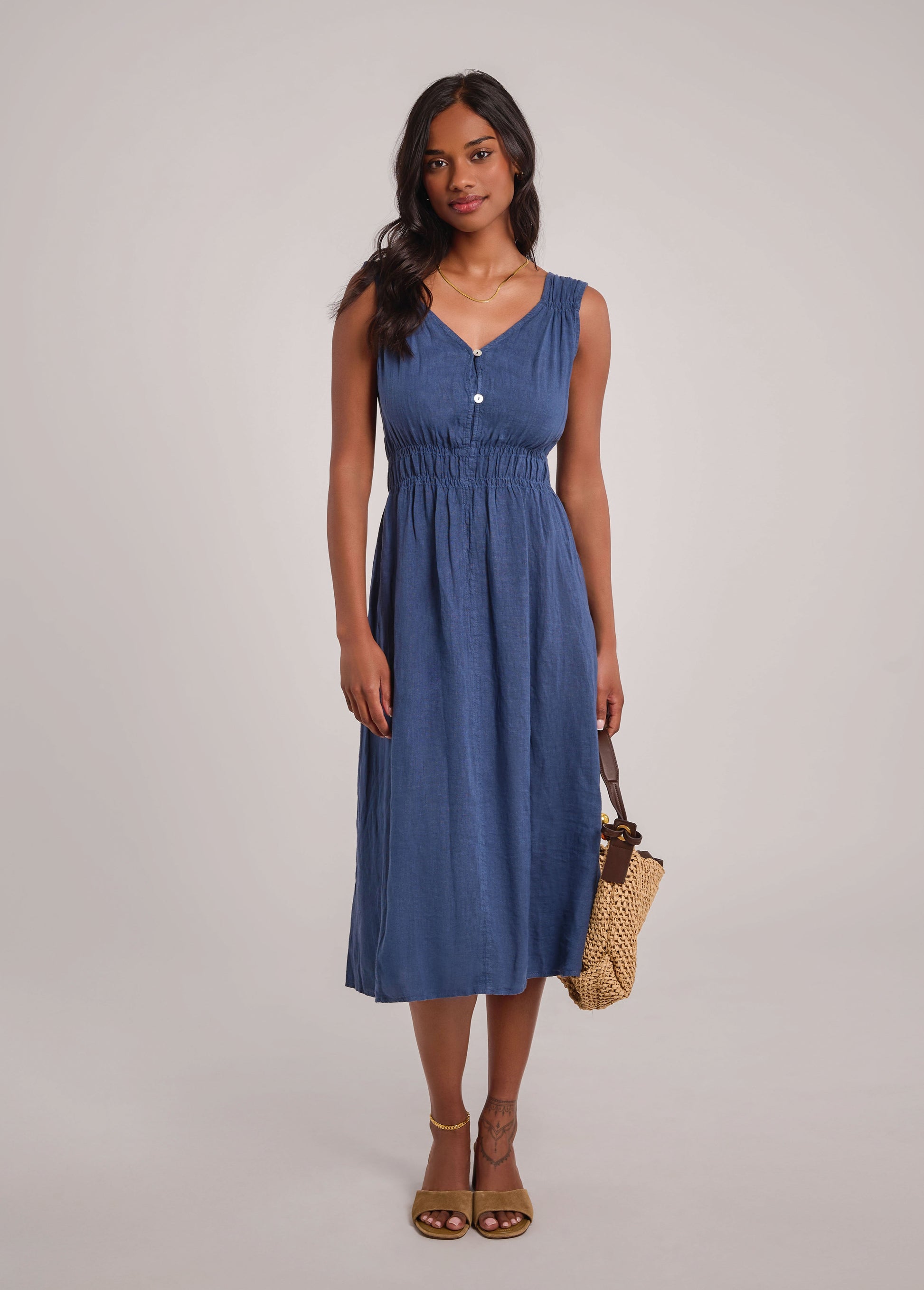 LUNA ROBE MIDI EN LIN / DENIM