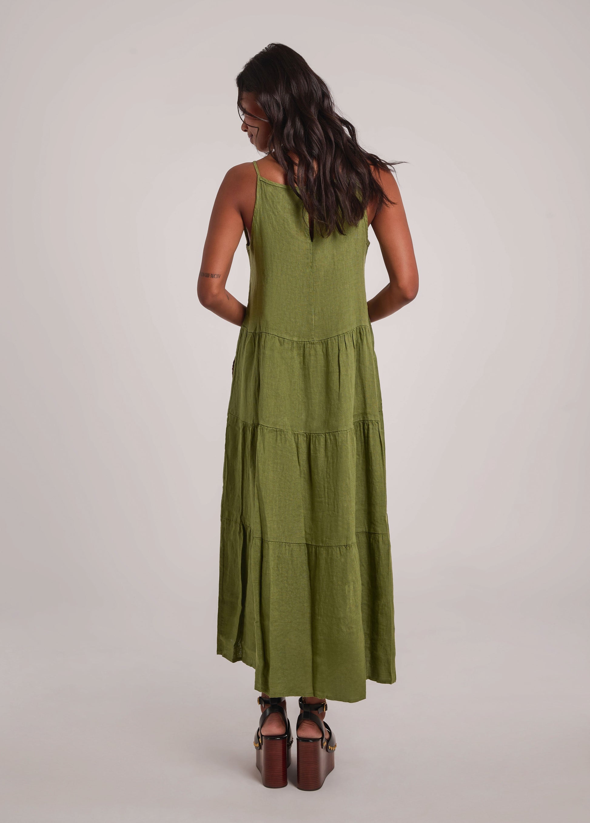 OPHELIA ANKLE GRAZING LINEN DRESS / MOSS