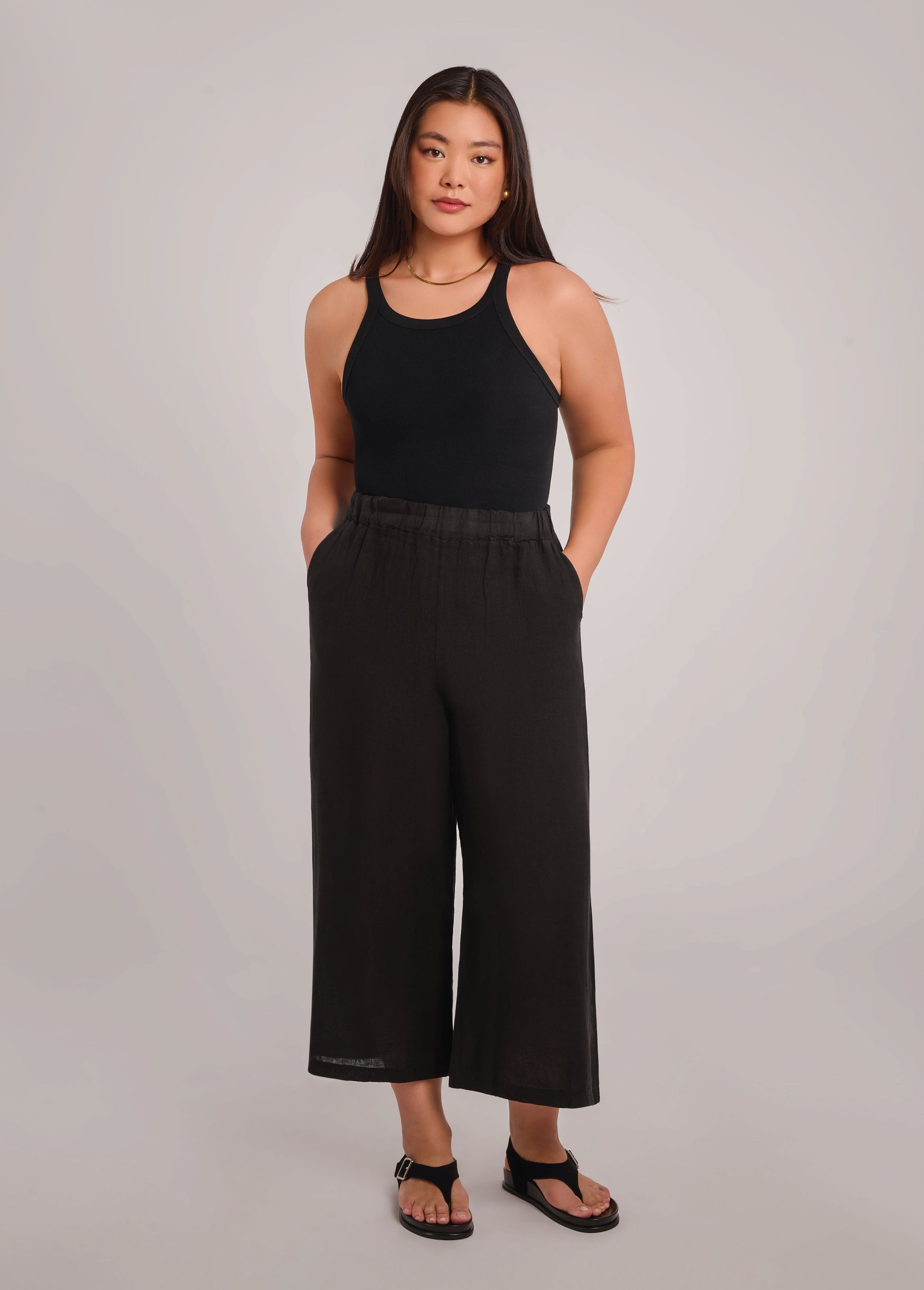 KAMILLA PANTALON COURT À JAMBES LARGES / BLACK