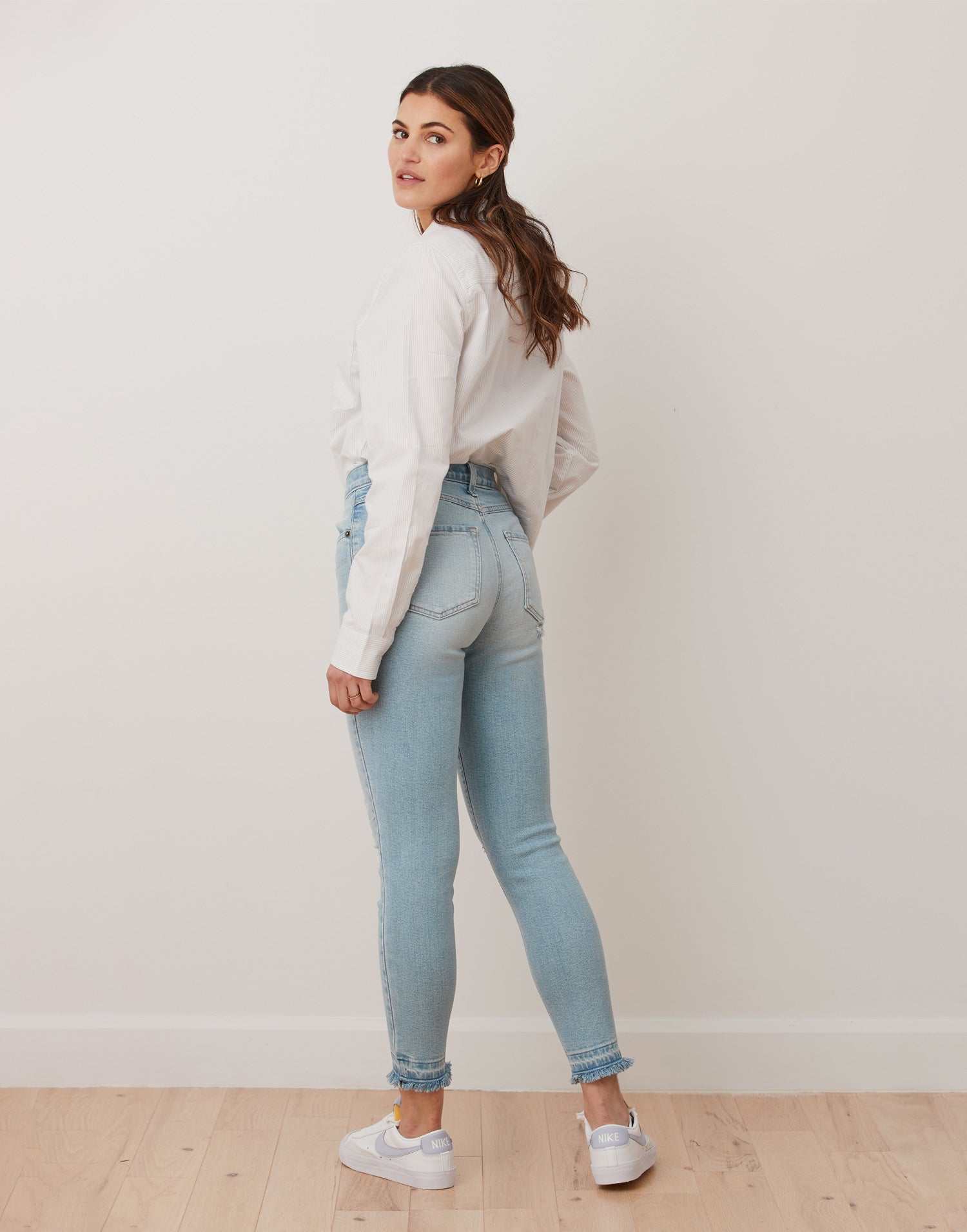 Rachel, notre jeans coupe étroite, est ajustée des hanches aux chevilles et épouse parfaitement les formes du corps, convenant ainsi à toutes les silhouettes.