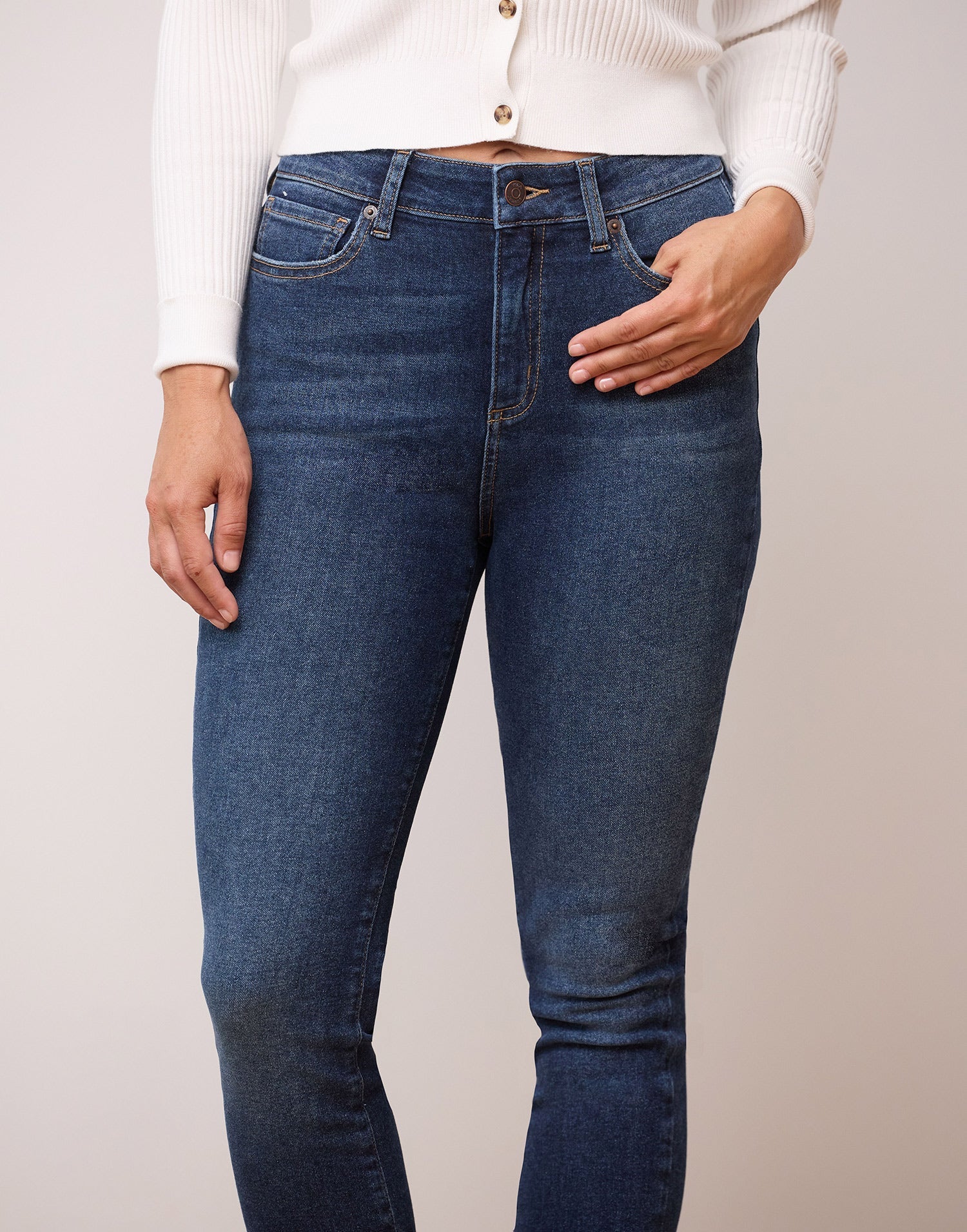 Product Description These high rise jeans are a mid-blue wash with light fading at the thighs, gently worn-in whiske...