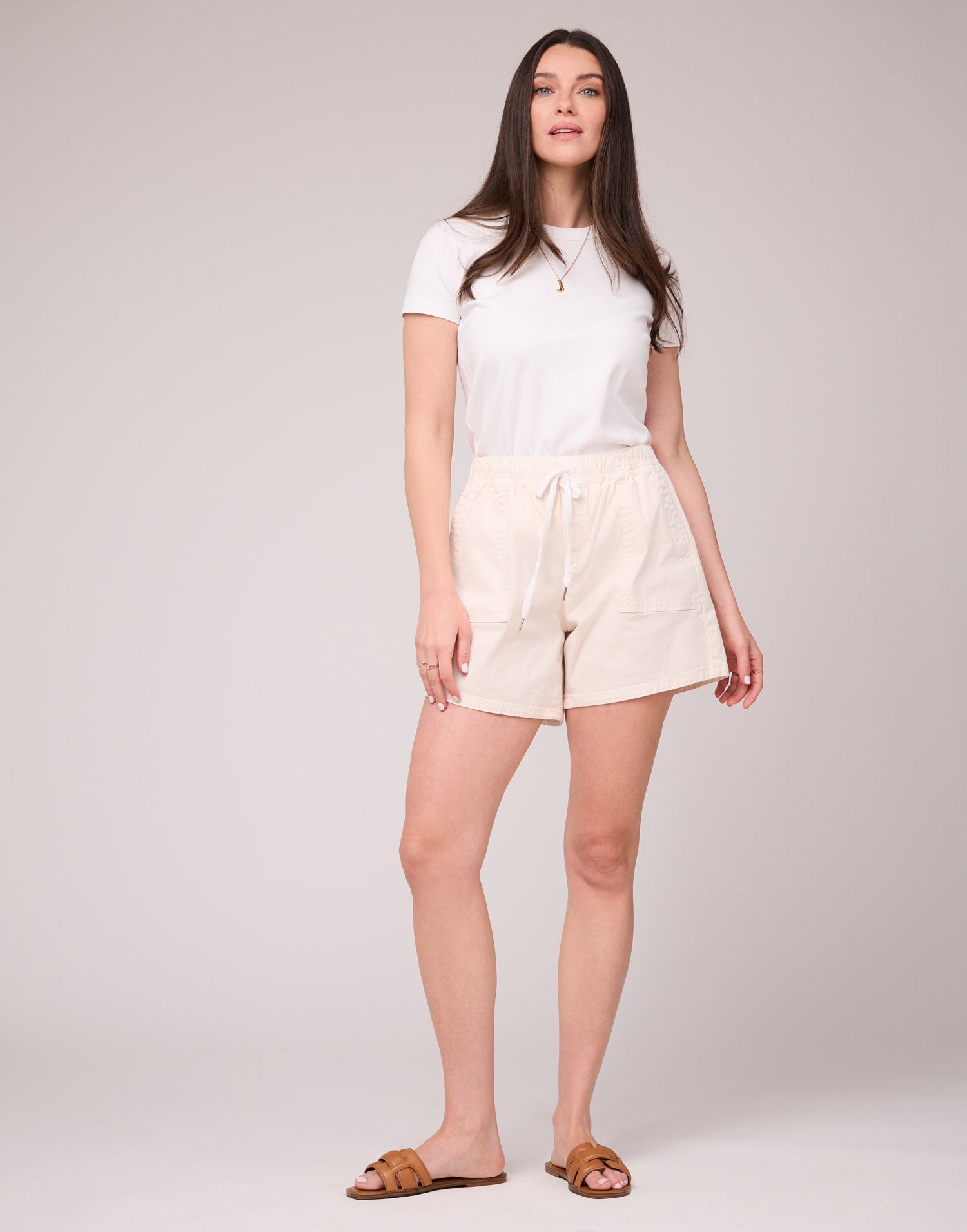 Notre short Sandbar est fabriqué en denim léger qui respire. Doté d'un cordon à la taille pour un ajustement personnalisé, son ton beige clair s'agence facilement à divers hauts, quelle que soit l'occasion.