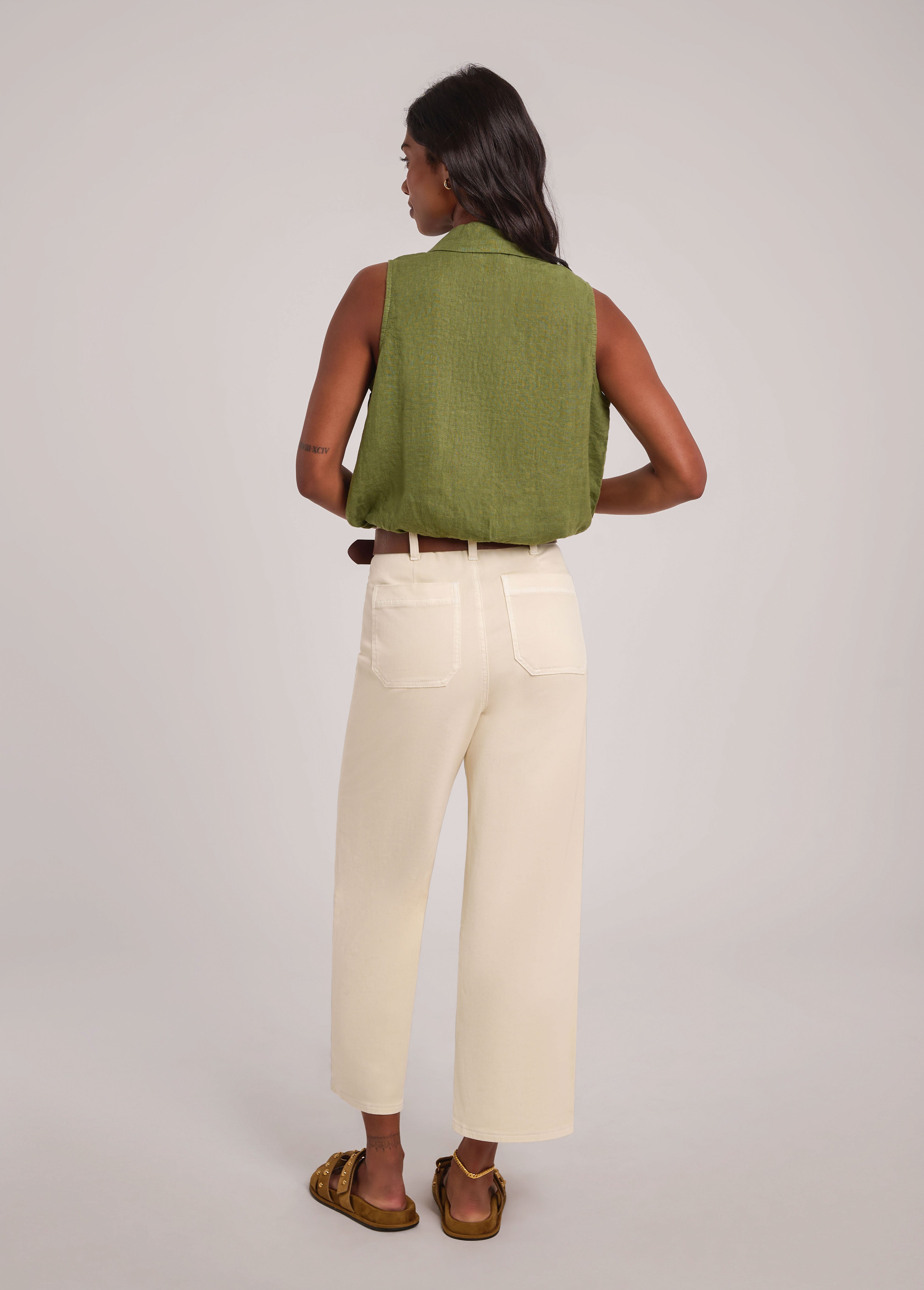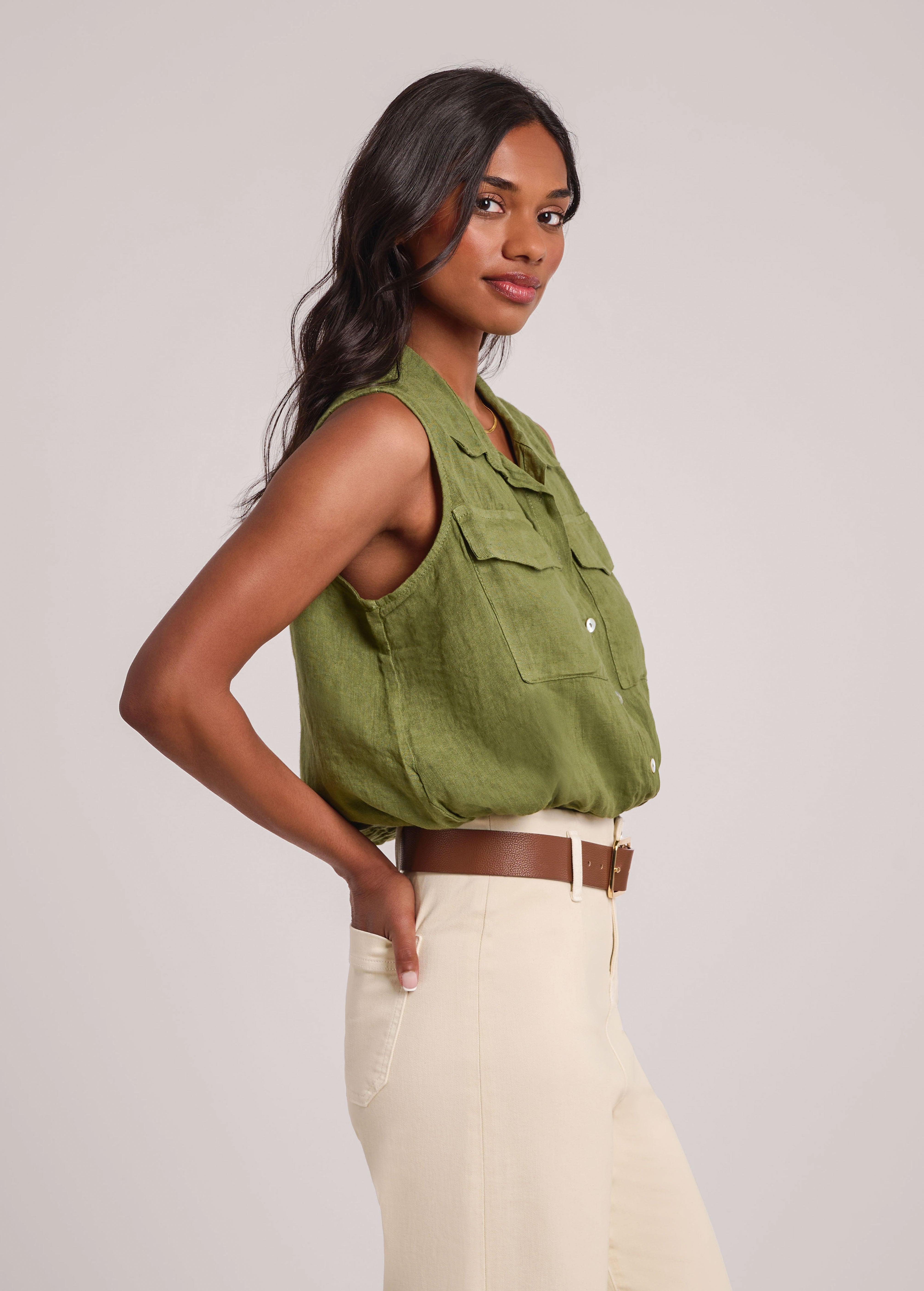 SOL LINEN SLEEVELESS VEST / MOSS